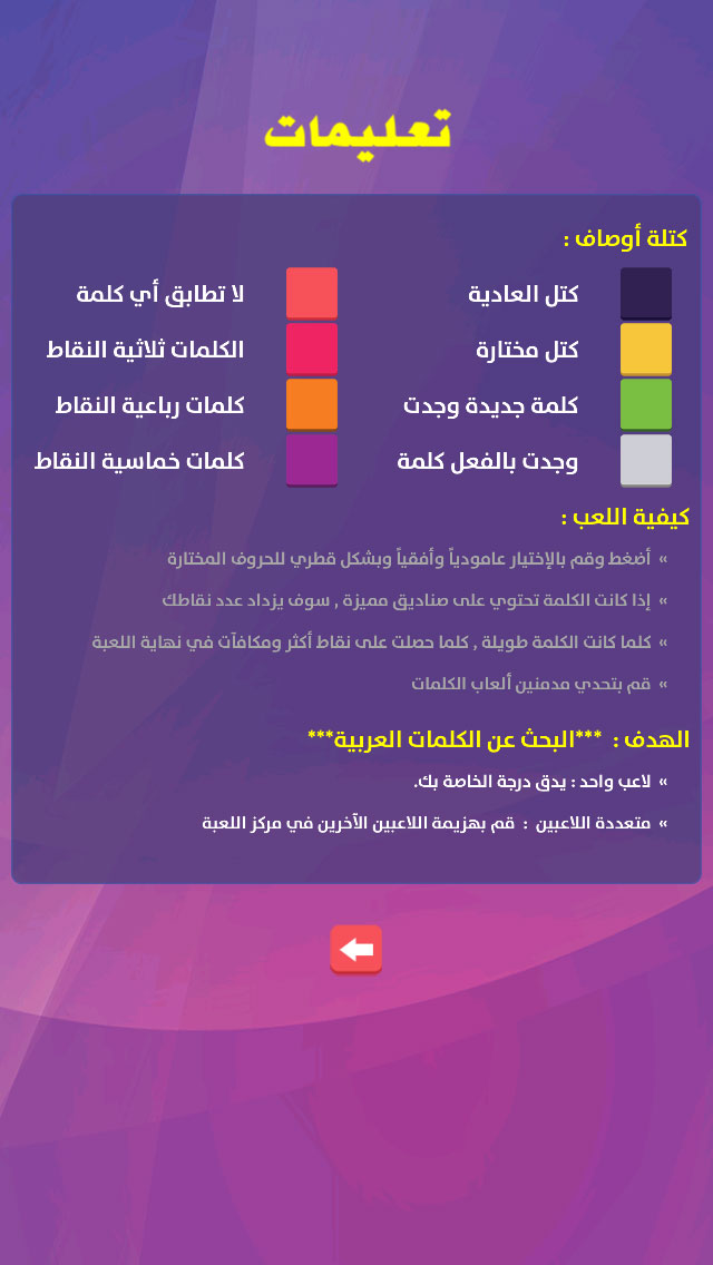 » كلما كانت الكلمة طويلة , كلما حصلت على نقاط أكثر ومكافآت في نهاية اللعبة