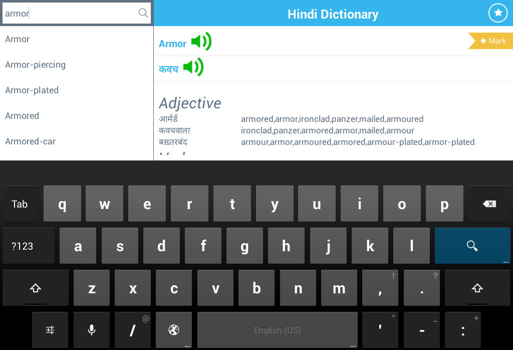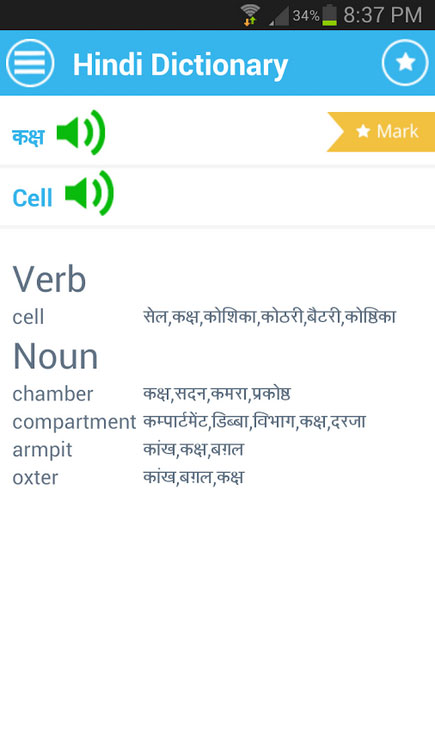OFFLINE Hindi To English and English To Hindi both sided Dictionary. Specially made for fast learners whose native language is Hindi and want to learn English and also who knows English and want to learn Hindi. Very useful for Hindi speaking & Indian Students residing Europe or non Hindi environment and want to learn English. Focused on Indian students residing abroad for higher study.